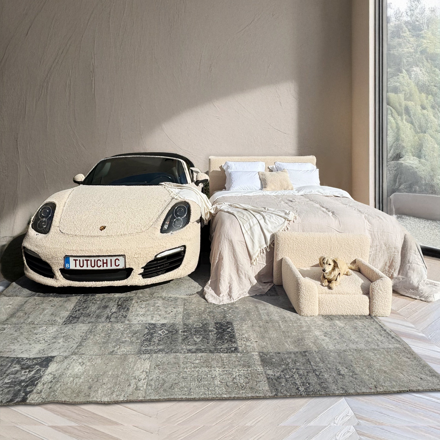 From wardrobe to bedroom — discover the full teddy experience. Indulge in exclusive accessories and made-to-order garments inspired by Freya Poppe’s iconic teddy-wrapped Porsche