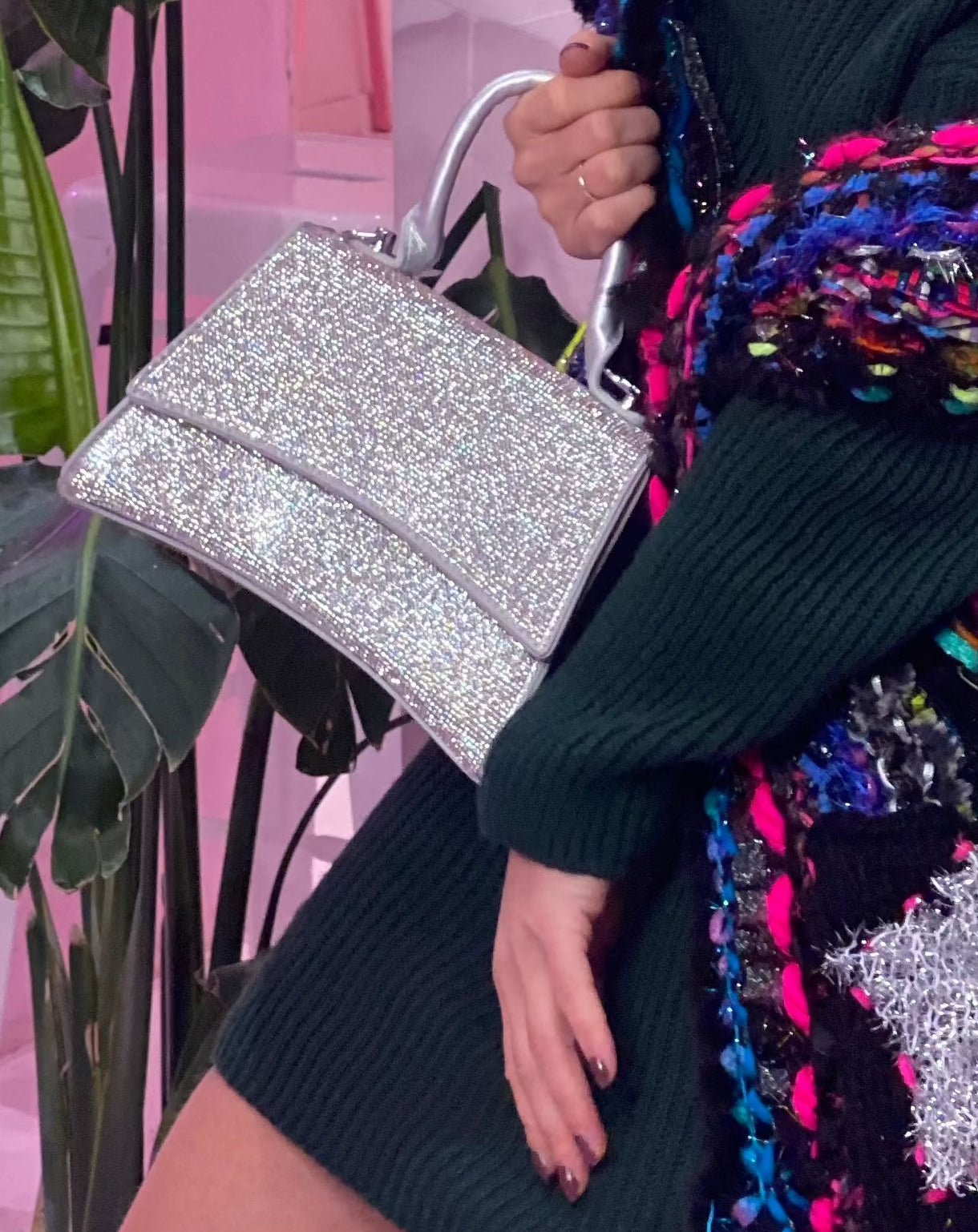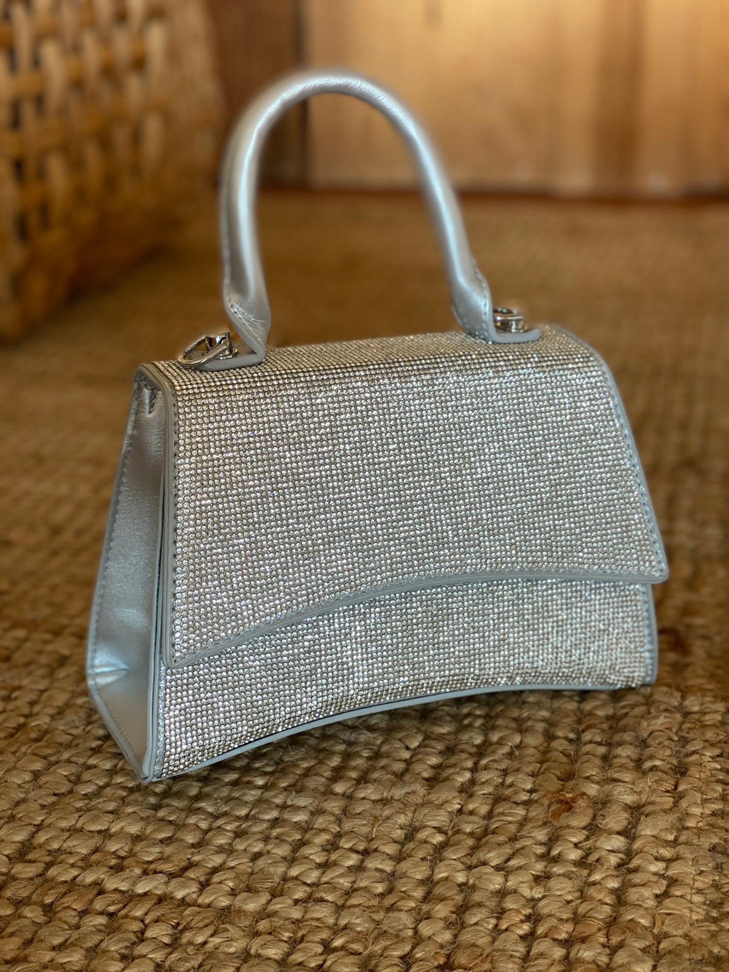 The 'Rune' bag is covered in dazzling rhinestones with a eco-leather top handle. Carry yours in hand or hang it over your shoulder or cross body with the extra removable long eco-leather shoulder strap.